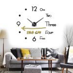 Pokyny a příslušenství pro snadnou instalaci jsou součástí balení. Pomocí hřebíků a kladiva připevněte hák ke zdi a poté k němu připevněte hodinový stroj. Označte požadovaný průměr ciferníku, odstraňte ochrannou fólii z čísel a nalepte je na zeď. Připojte ukazatel k mechanismu a samolepicí nástěnné hodiny jsou hotové.