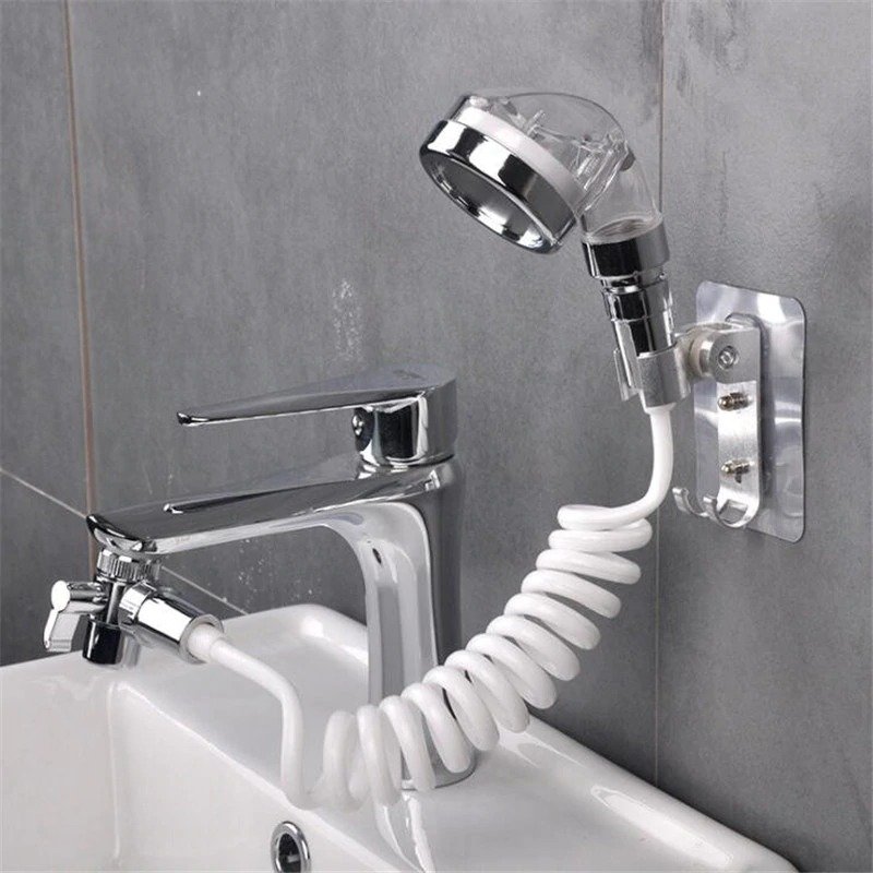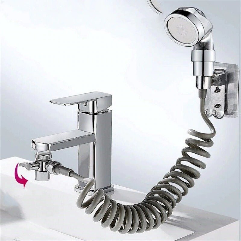 Vnější prodloužení faucetu pro víceúčelové použití v kuchyních a koupelnách. Snadná instalace s veškerým příslušenstvím v balení (sprchová rukojeť, hadice, držák, ventil, držák)