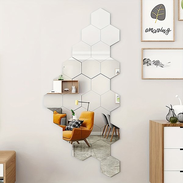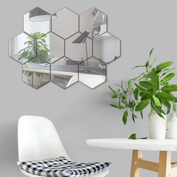 Nálepky jsou vyrobeny z kvalitního reflexního materiálu, který vypadá jako pravé zrcadlo. Každá nálepka má hexagonální tvar, který dodává vašim stěnám moderní a trendy vzhled.