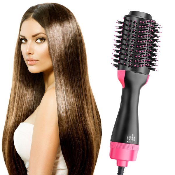 Speciální technologie kombinuje dvě funkce v jedné. Jednostupňový fén vlasy účinně vysušuje, zatímco nylonové štětiny s kulatými hroty vytvářejí objem a tvarují účes. Vlasy se nezacuchávají!