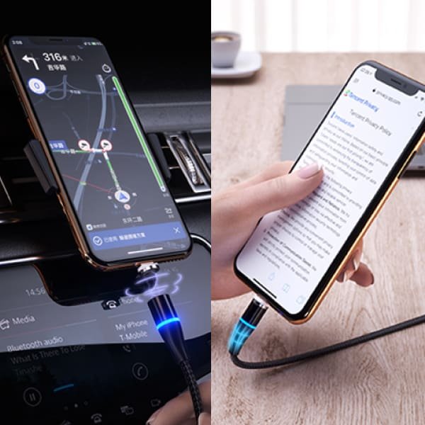 Nabíjecí kabel má magnetický design. Zapojte USB konektor do nějaké nabíjecí stanice, například do počítače, nabíječky nebo auta a přiložte magnetický konektor blízko nabíjecímu místu na vašem telefonu. Protože je magnet velmi silný, telefon se začne nabíjet téměř okamžitě. Telefon je možné připojit dokonce jen jednou rukou například při řízení.