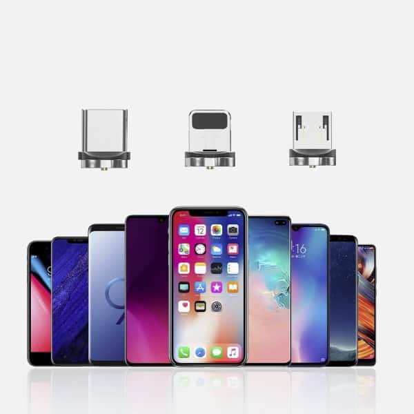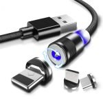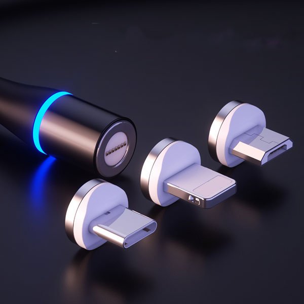 Nabíjecí kabel 3v1 má modrý LED indikátor na magnetu, který svítí, když je telefon připojený. Kabel má tři různé USB konektory, můžete tedy telefon nabíjet z jakéhokoli zdroje.