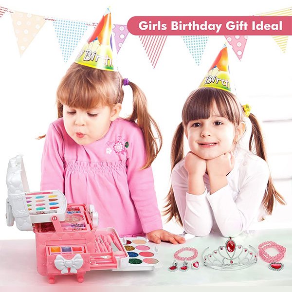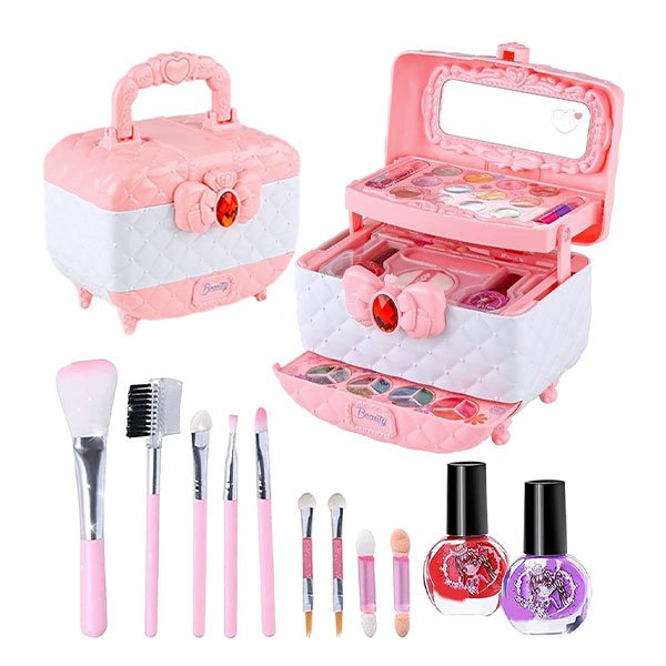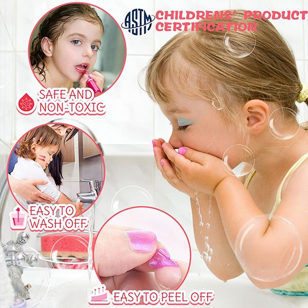 Naše dětská sada na líčení je vyrobena z netoxických ingrediencí a je bezpečná pro citlivou dětskou pokožku.