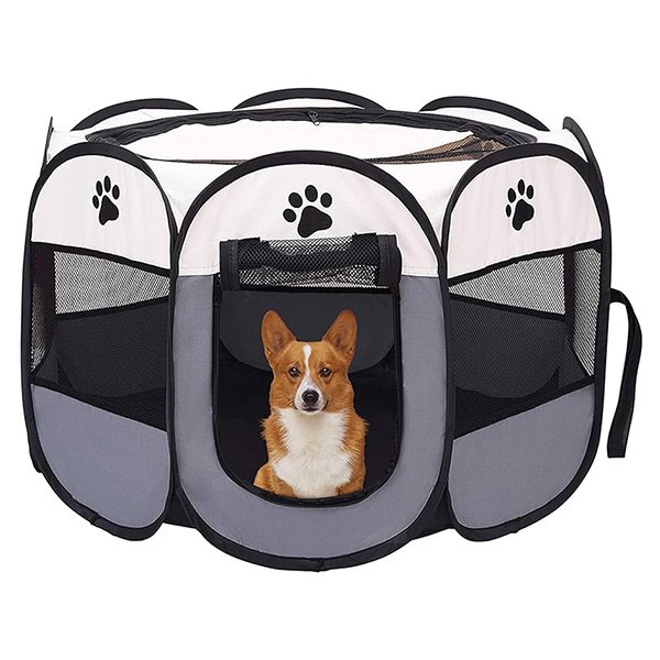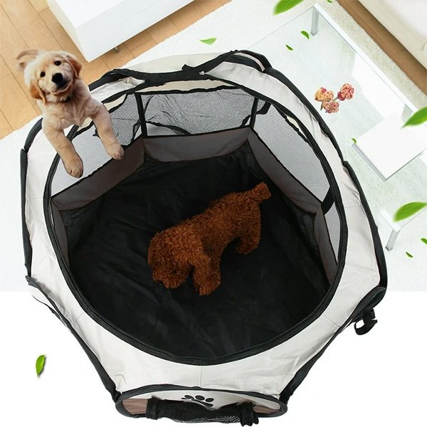 Naše přenosná skládací ohrádka pro domácí zvířata je navržena pro snadnou přepravu a lze ji používat jak uvnitř, tak venku, čímž poskytuje bezpečný a chráněný prostor pro vašeho chlupatého přítele.