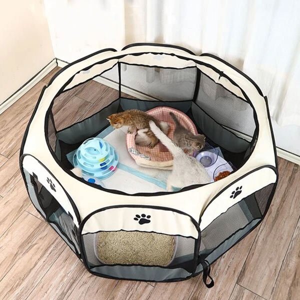 Díky jednoduché skládací konstrukci lze naši ohrádku pro domácí mazlíčky postavit nebo složit během několika sekund, takže je ideální na cesty nebo pro rychlé uskladnění, když se nepoužívá. Žádné potíže, pouze pohodlí.