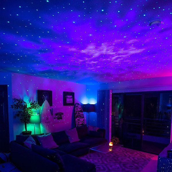 Hvězdoprojektor dokáže promítat až 21 různých barev. Abyste získali tolik kombinací, míchá se mezi sebou 5 standardních barev (červená, modrá, zelená, bílá a zelený laserový bod). Různé barvy v kombinaci s dynamickou noční projekcí různých rychlostí vytvářejí v místnosti s krásným světlem hvězd uvolněnou, romantickou a barevnou a zábavnou atmosféru.