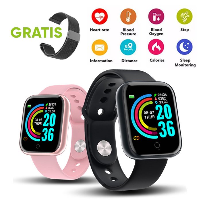 Stylové hodinky jsou vhodné jak pro ženy, tak pro muže díky jejich unisex designu. Chytrý náramek přichází s černým a růžovým páskem. Na výběr je rovněž pásek z odolné oceli nebo lehkého silikonu.