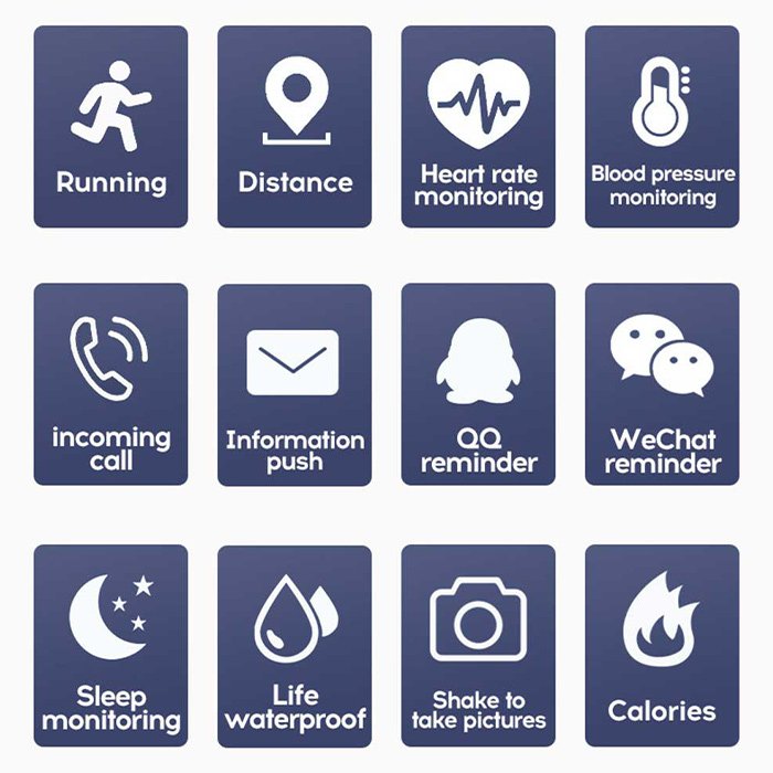 S chytrými hodinkami můžete sledovat krevní tlak, tep, hladinu kyslíku v krvi a spánek.  Chytrý náramek nabízí různé upomínky, jako třeba čas k odpočinku nebo aktuální předpověď počasí. Před Bluetooth připojení můžete také přijímat nebo odmítat hovory, vybírat hudbu a mnohem více.