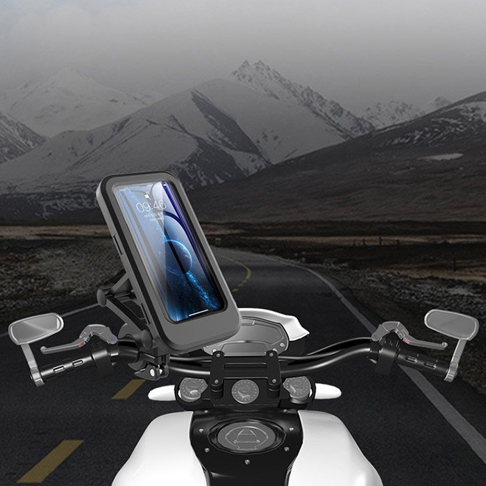 Tento držák mobilního telefonu na motorku má nastavitelné rameno a umožňuje otáčení o 360°. Telefon si můžete nastavit do libovolného úhlu a výšky, která vám vyhovuje. Držák telefonu může fungovat v poloze na výšku i na šířku. Díky konstrukčnímu řešení se snadno a rychle instaluje bez použití nářadí. Jeho zajišťovací konstrukce a magnetická přísavka umožňují rychlé zvednutí a upuštění telefonu.