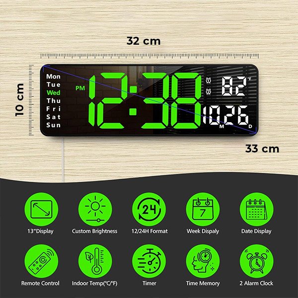 Díky velkému a jasnému LED displeji jsou naše digitální nástěnné hodiny dobře viditelné i z druhého konce místnosti, takže není nutné mhouřit oči ani se namáhat.