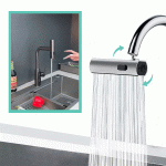 Naše multifunkční kuchyňská baterie je vybavena 360° otočným výtokem tlakové vody, který nejen zabraňuje rozstřikování, ale také optimalizuje průtok vody pro efektivní a kontrolované mytí a oplachování.