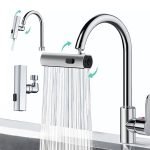 Naše multifunkční kuchyňská baterie je vybavena 360° otočným výtokem tlakové vody, který nejen zabraňuje rozstřikování, ale také optimalizuje průtok vody pro efektivní a kontrolované mytí a oplachování.