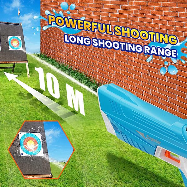 Nemusíte se již starat o vybití baterie uprostřed epické bitvy. Vodní pistole je vybavena nabíjecí baterií, která poskytuje dlouhotrvající provoz. Navíc je postavena tak, aby odolala nárokům venkovních her díky své odolné konstrukci, která snese nárazy a pády.