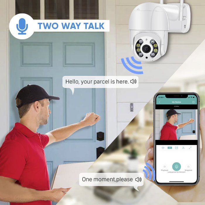 Kamera nahrává ve vysoké kvalitě a obraz je čistý, takže snadno rozeznáte, kdo a co je na videu. Je také vybavena kamerou s infračerveným světlem, takže vidíte jasně i v noci. Vestavěný mikrofon a reproduktor umožňují nahrávat zvuk a také komunikovat s osobou nebo narušiteli a upozornit je.